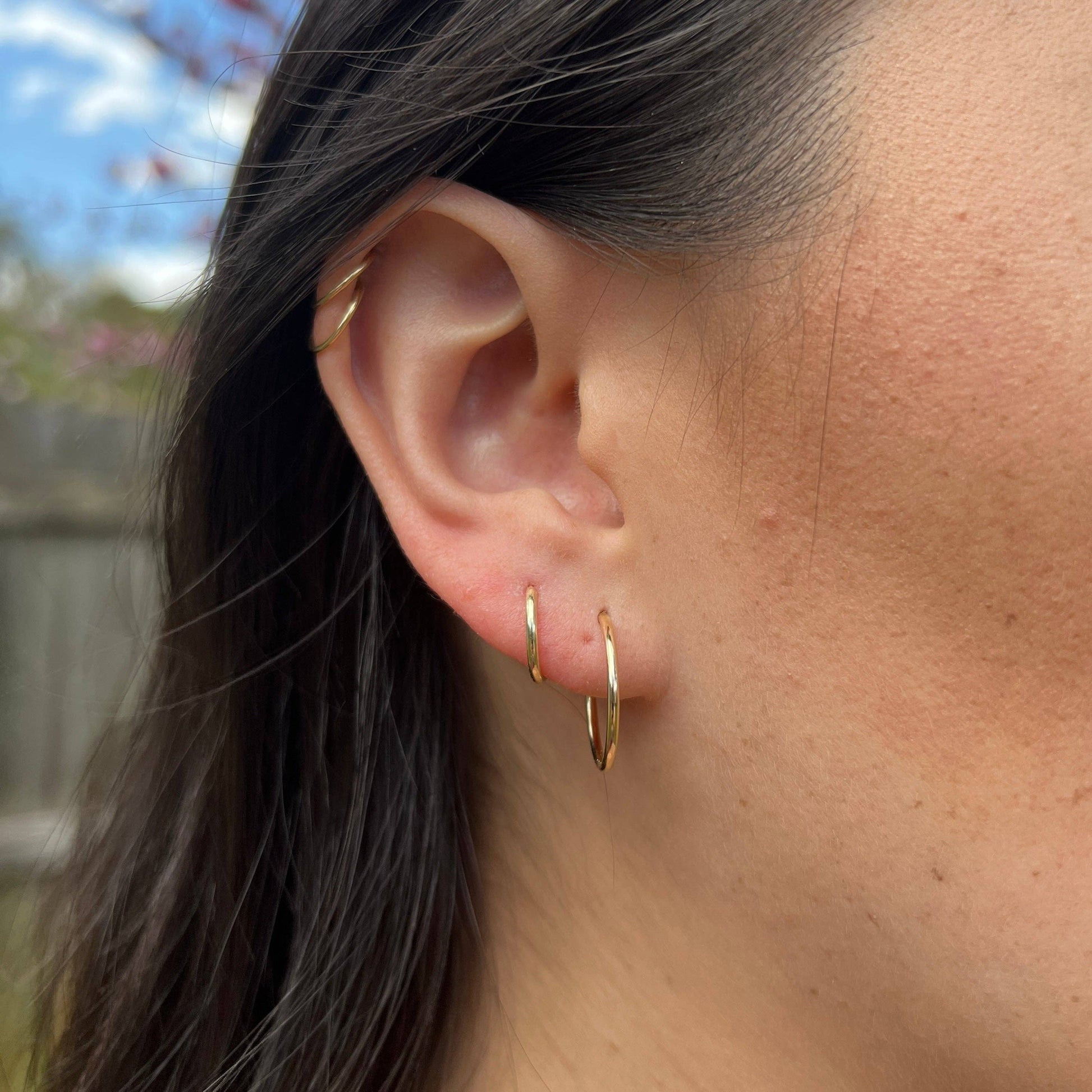 Searching for THE pair of good hoops that never have to be taken off? This is your match. Our Everyday Hoops come in sizes ranging from 10mm - 24mm and they are all perfect for that wear through whatever look! We promise that you'll live your best life in these. And the best part? They never have to come off! (Until it's time to clean!)