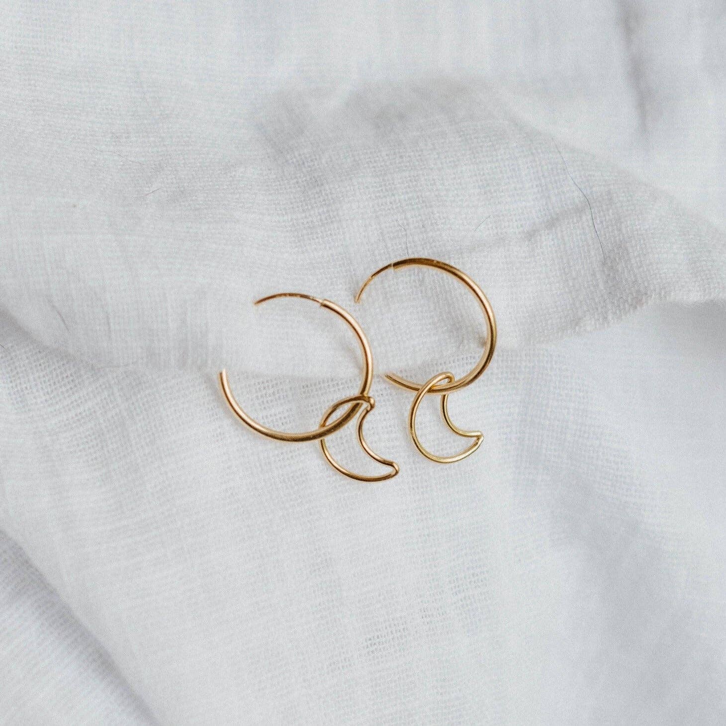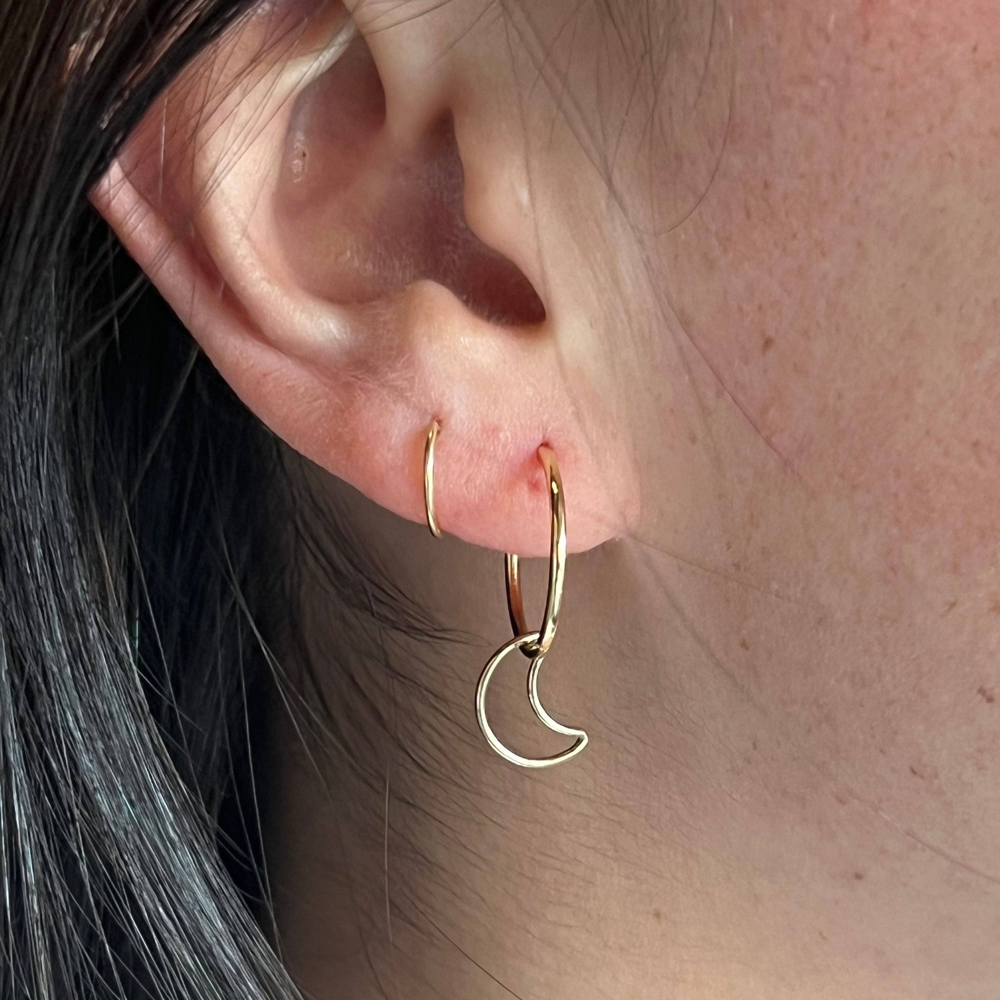 Two-in-one Selene Hoops feature a removable crescent moon charm that hangs from our Everyday Hoop!
